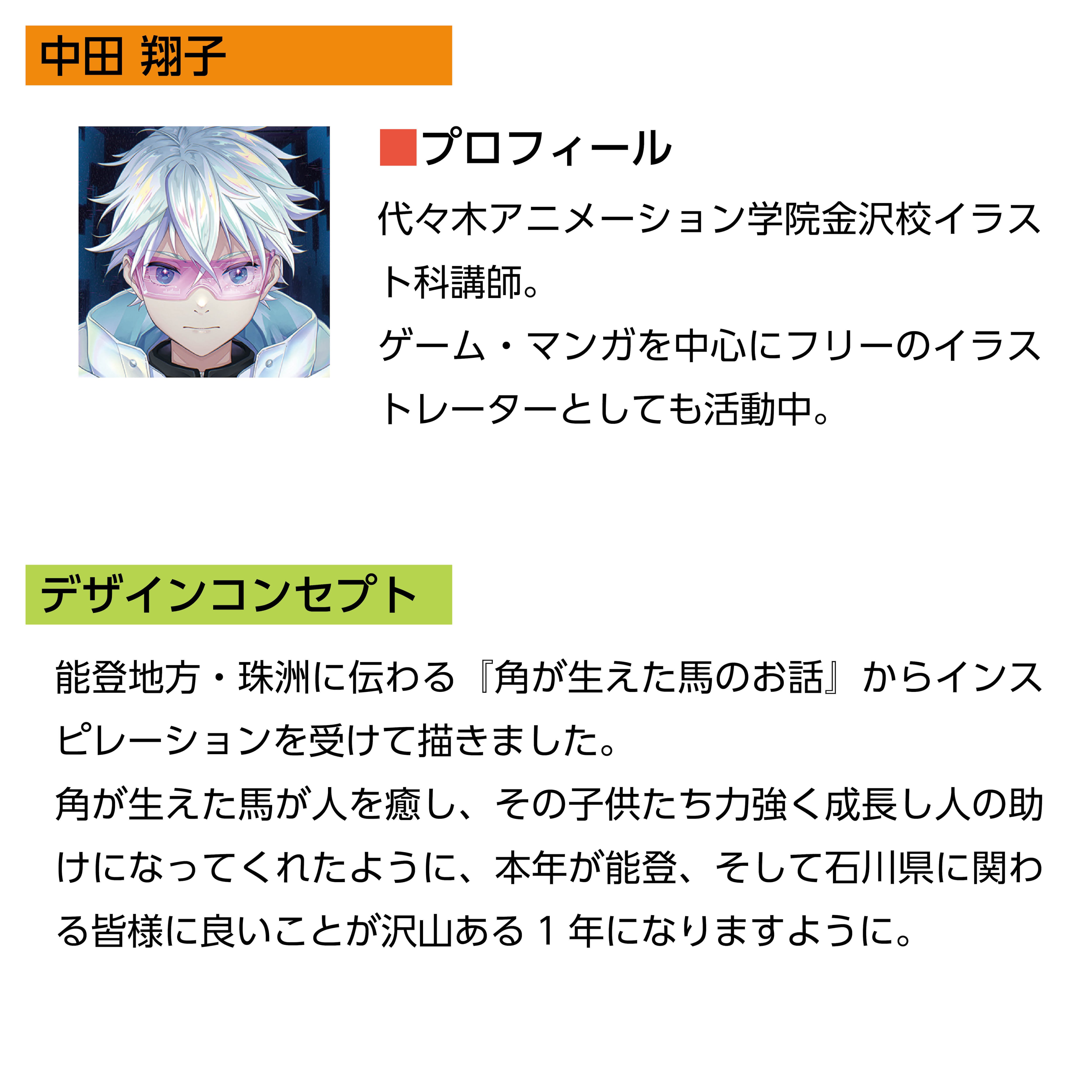 角が生えた馬が人を癒し、その子供たち力強く成長し人の助けになってくれたように、本年が能登、そして石川県に関わる皆様に良いことが沢山ある1年になりますように。